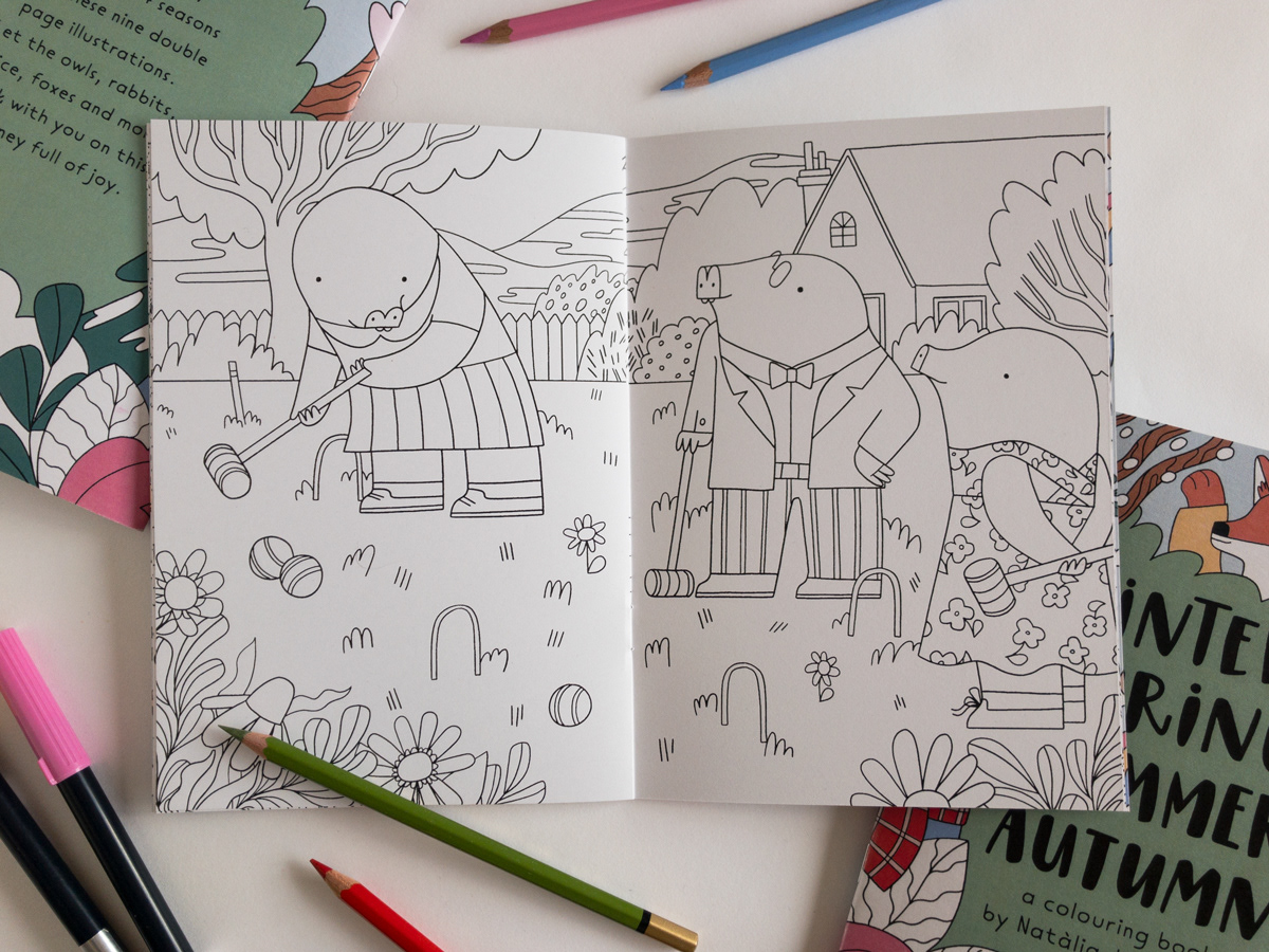 Winter, Spring, Summer, Autumn is a Colouring Book for kids, inspired by the 4 seasons and the woodland animals having fun through the year. This was a self-initiated project, inspired by my life in the English countryside and the love for animals. ‘Colour your way through the 4 seasons with these nine double page illustrations. Let the owls, rabbits, mice, foxes and more walk with you on this journey full of joy.’