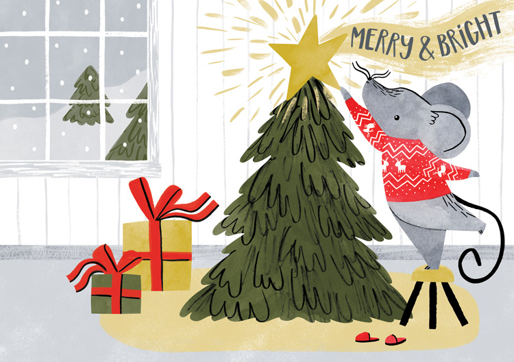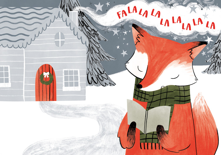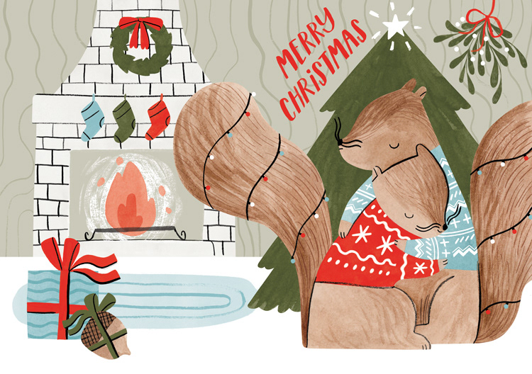 Capsule Christmas collection inspired by the forest creatures and the winter holidays traditions. Illustrations are designed to be front and back of greeting cards, with their coordinating patterns. Available to sell or license.